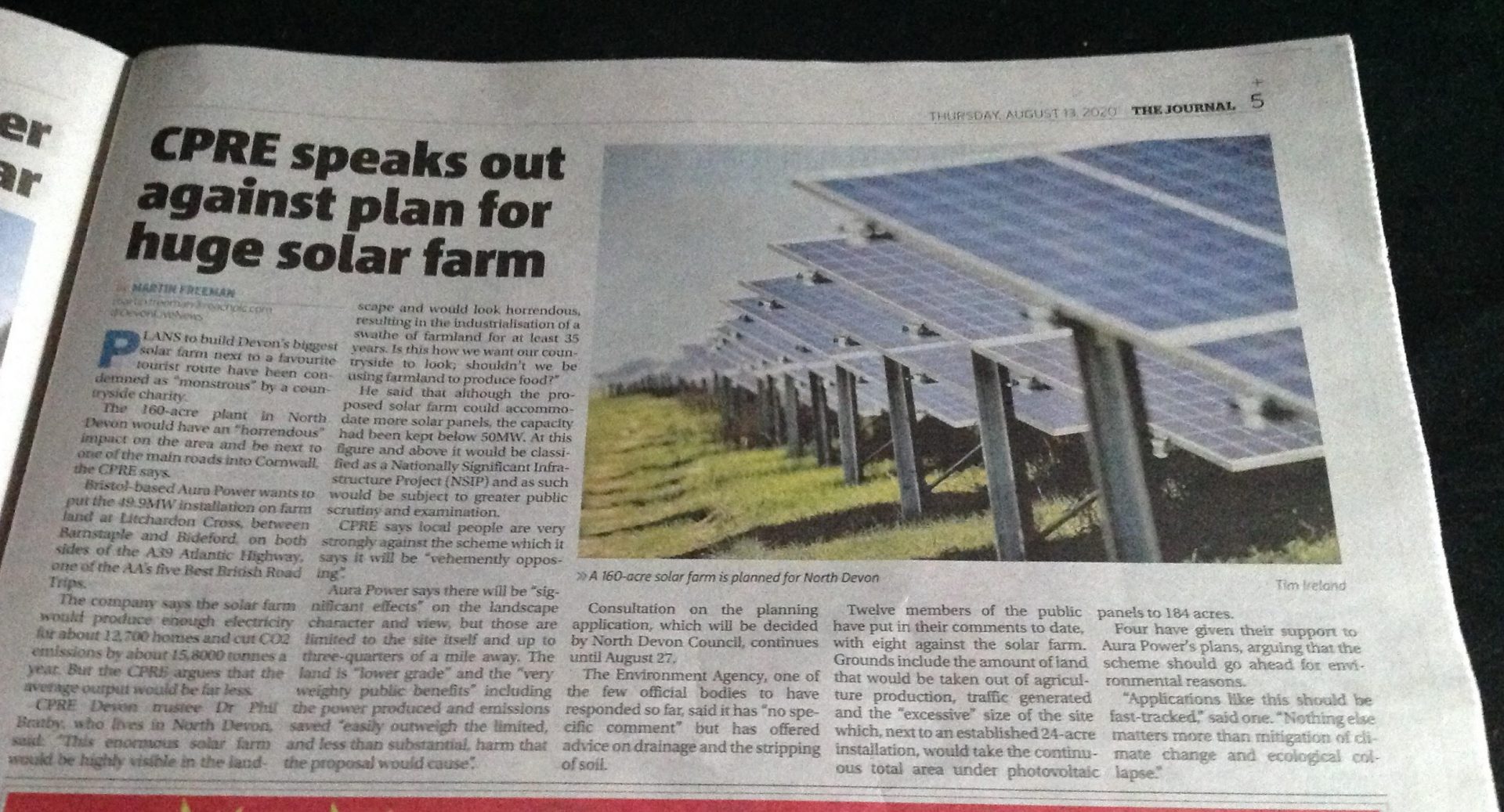 There is still time to submit your objection to North Devon District Council to an application for what would be Devon’s biggest solar installation – at Litchardon Cross, Newton Tracey near Barnstaple, North Devon.